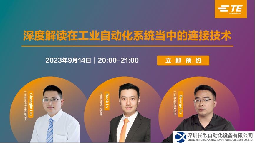 與此同時,2023年9月14日(下周四) 20:00 – 21:00,TE 工業(yè)事業(yè)部誠邀您參加我們的線上研討會,一同暢聊工業(yè)自動化系統(tǒng)中的連接技術!