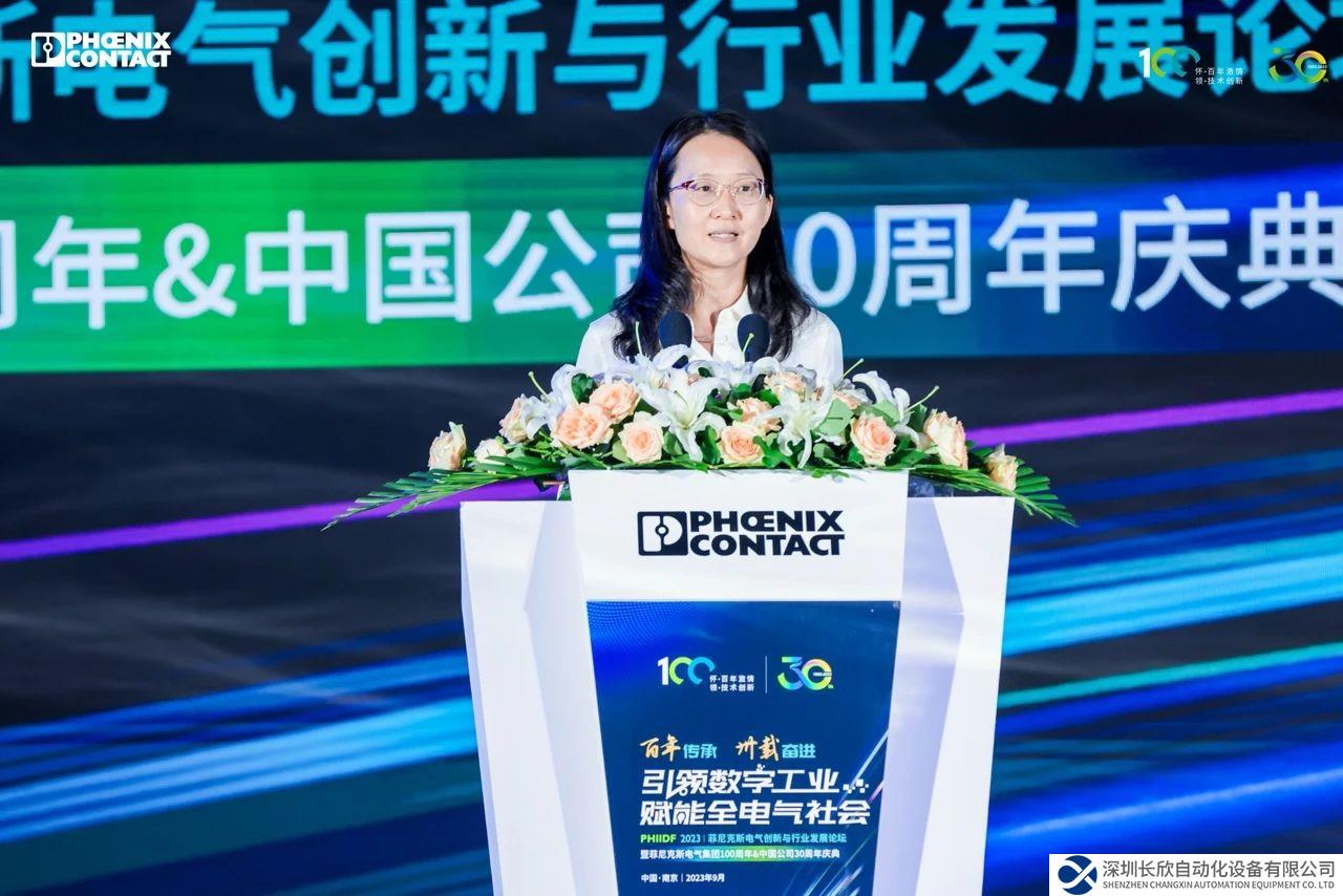 南瑞集團總會計師、黨委委員魏蓉女士代表南瑞對菲尼克斯電氣中國公司和員工表示祝賀,向關心支持中國公司的政府領導、客戶、伙伴表示感謝。南瑞和菲尼克斯電氣共同經歷了創(chuàng)業(yè)、成長、發(fā)展的歷程,互相尊重和信任。三十而立,向陽出發(fā),南瑞期待與菲尼克斯電氣攜手再創(chuàng)輝煌,再譜新篇。
