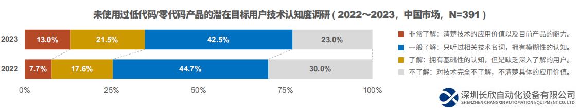目前的實(shí)踐者中,約49%的中國企業(yè)對低代碼/零代碼的應(yīng)用已跨越初始探索階段,嘗試尋找更多實(shí)踐機(jī)會(huì)。