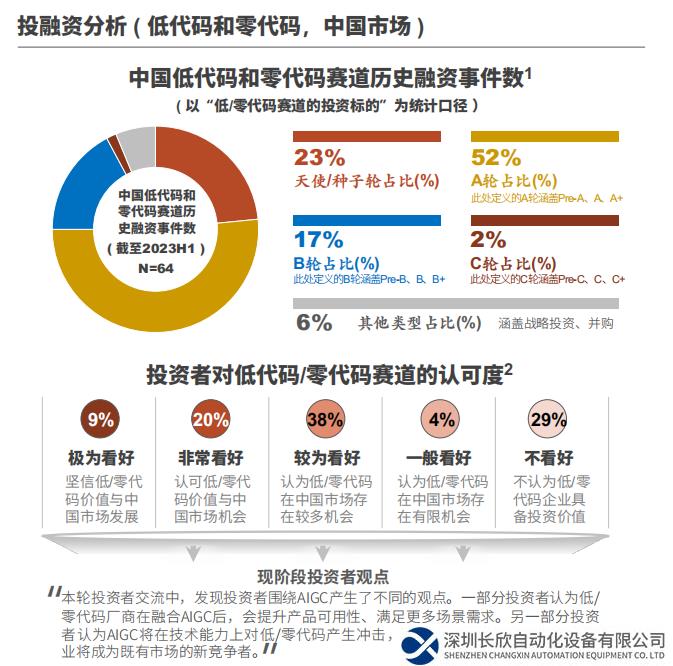 從融資輪次來看,多數(shù)廠商處于早期創(chuàng)業(yè)階段。行業(yè)中不乏大型科技公司或IT企業(yè)收購低/零代碼廠商的案例(如用友收購APICloud、字節(jié)跳動(dòng)收購黑帕云)。雖然現(xiàn)階段低代碼/零代碼賽道的資本熱度降低,但隨著融合了AIGC的低/零代碼產(chǎn)品競相落地,資本市場或?qū)⒃谝欢ǔ潭壬匣嘏?/p>