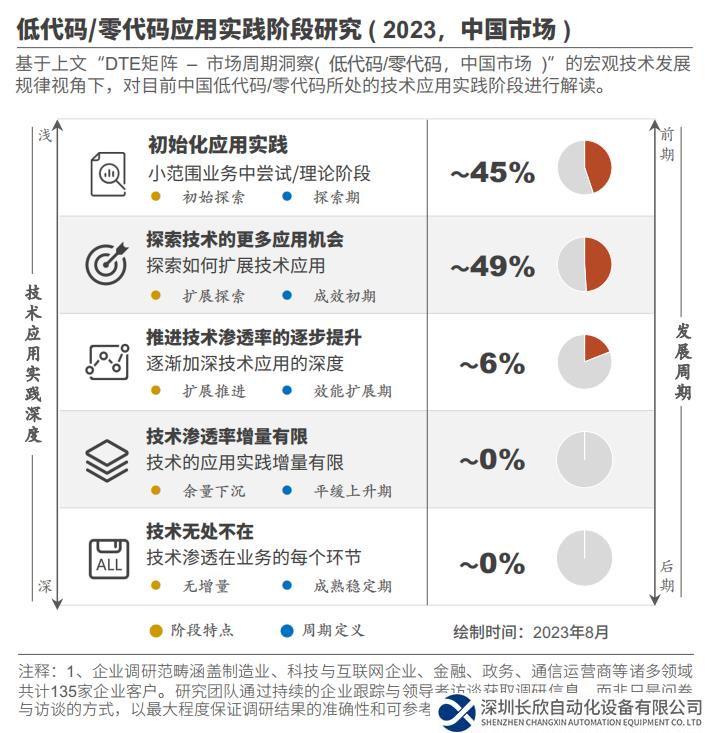 目前的實(shí)踐者中,約45%的中國企業(yè)對低代碼/零代碼的應(yīng)用實(shí)踐處于初始探索階段。