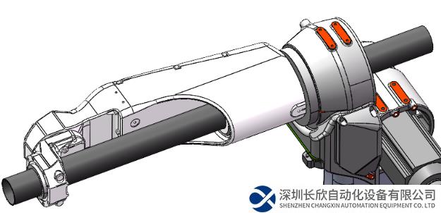 小臂貫穿式中空設(shè)計(jì),貫穿孔徑達(dá)57mm,外圍管線內(nèi)部布置,干涉空間更小,可達(dá)區(qū)域更廣,更加方便客戶使用。