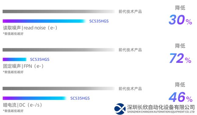 新品讀取噪聲與固定噪聲(FPN)分別低至2.44e-和2e-,與前代技術(shù)產(chǎn)品相比,分別大幅降低了30%及72%以上。此外,該芯片暗電流(DC)在80℃環(huán)境下更是低至450e-/s,與上一代技術(shù)產(chǎn)品對比,降低約46%,不僅帶來干凈明細(xì)、低噪聲的成像效果,同時也保障了高端工業(yè)成像應(yīng)用在高溫條件下的成像質(zhì)量和穩(wěn)定性。