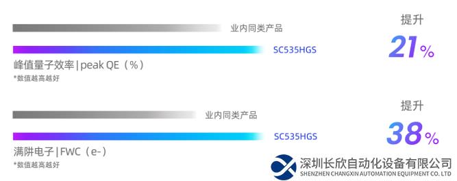 在SmartGS?-2 Plus先進(jìn)技術(shù)加持下,SC535HGS峰值量子效率(peak QE)和FWC分別高達(dá)91%和16.6ke-,與業(yè)內(nèi)同類產(chǎn)品相比,分別提升了超21%和38%。即使在暗光工業(yè)環(huán)境中,新產(chǎn)品的高感光性能仍然能夠幫助高端機(jī)器視覺相機(jī)準(zhǔn)確地檢測和測量目標(biāo),高效解決自動化流水線視覺信息采集難題。