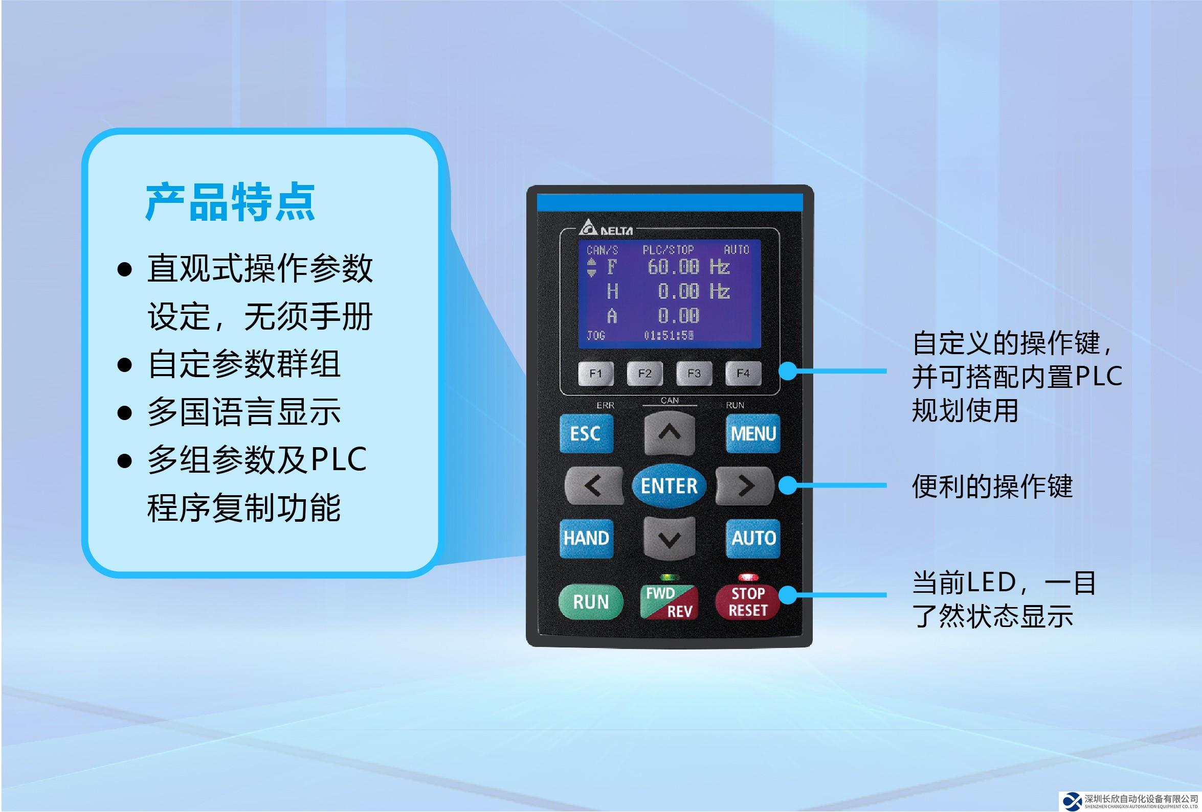 C2000 Plus搭配可視化LCD操作面板,操作方便;內(nèi)置行業(yè)參數(shù)組合功能,可直接選擇應(yīng)用并瀏覽參數(shù),輕松完成參數(shù)設(shè)定。