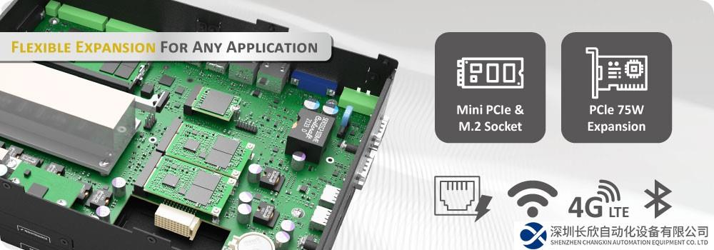 支援獨立四顯(DP/HDMI/VGA/CDS),P2202 系列除了擁有原生I/O外,透過內(nèi)建的Mini PCIe、M.2 Key E 插槽可支援如4G、WIFI、藍牙等無線通訊模組,其中P2202E還擁有PCIe插槽可支援75W的擴充卡,針對特殊用途更可透過德承專屬模塊的模組化擴充功能增加POE或是IGN功能。