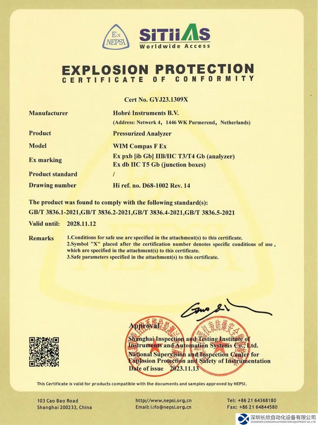 此次WIM COMPAS分析儀成功通過NEPSI的嚴格審核,不僅充分展示了該分析儀在防爆性能方面的卓越實力和表現(xiàn),同時也是對其整體品質(zhì)、精細化生產(chǎn)流程以及嚴格的交付標準等環(huán)節(jié)的一次全面檢驗和肯定,為WIM COMPAS分析儀進一步拓展市場份額、服務更廣泛的客戶群體提供了更為強大和可信賴的保障。