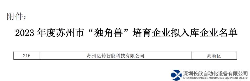 近日,蘇州市科學技術(shù)局公布了2023年度蘇州市“獨角獸”培育企業(yè)擬入庫企業(yè)名單并于1月2日結(jié)束公示,億鑄科技榮獲市級“獨角獸”培育企業(yè)資格認證。