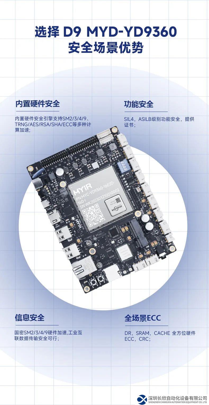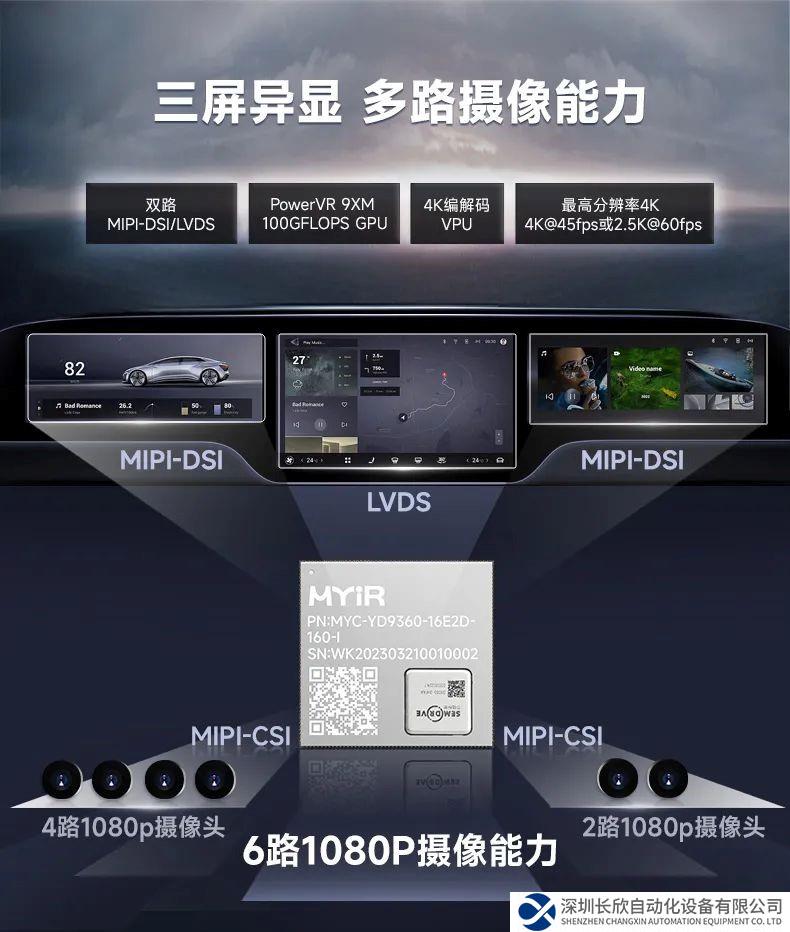 D9360處理器是芯馳推出的一款六核CPU的高度集成、低功耗化、高安全性芯片,采用AEC-Q100車規(guī)級芯片工藝,并且通過ISO26262 ASIL_B功能安全認(rèn)證,是國產(chǎn)高性能芯片的代表作。米爾電子與芯馳科技(SemiDrive)強(qiáng)強(qiáng)聯(lián)合,基于芯馳D9-Pro高性能國產(chǎn)工業(yè)處理器共同推出米爾MYC-YD9360核心板、開發(fā)板及商顯板,賦能新一代車載智能、電力智能、工業(yè)控制、新能源、機(jī)器智能等行業(yè)發(fā)展,滿足多屏的顯示需求。