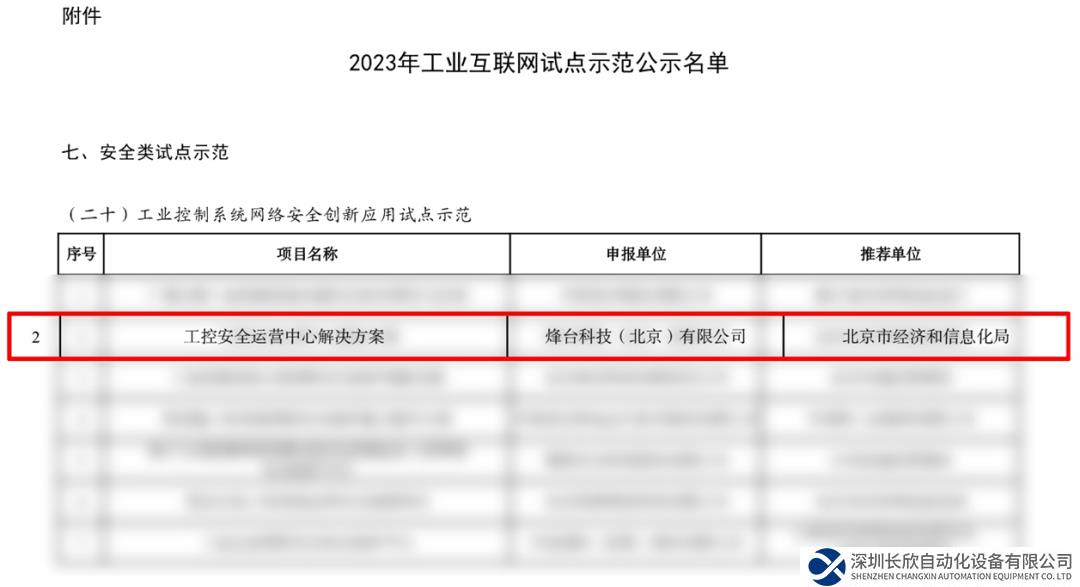 近日,根據(jù)《工業(yè)和信息化部辦公廳關(guān)于組織開展2023年工業(yè)互聯(lián)網(wǎng)試點示范項目申報工作的通知》(工信廳信管函﹝2023﹞319號),經(jīng)企業(yè)申報、地方推薦、專家評審,形成2023年工業(yè)互聯(lián)網(wǎng)試點示范名單。烽臺科技(北京)有限公司(以下簡稱“烽臺科技”)《工控安全運營中心解決方案》入選“安全類試點示范-工業(yè)控制系統(tǒng)網(wǎng)絡(luò)安全創(chuàng)新應(yīng)用試點示范”名單。
