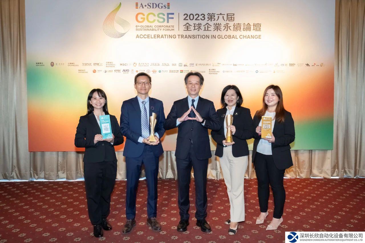 臺(tái)達(dá)榮獲2023年《臺(tái)灣企業(yè)永續(xù)獎(jiǎng)》八項(xiàng)大獎(jiǎng),臺(tái)達(dá)人資長(zhǎng)(中)陳啟禎代表領(lǐng)取殊榮