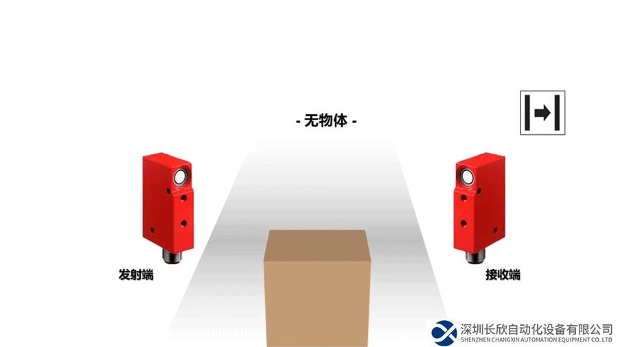 對射型傳感器分為發(fā)射端和接收端,傳感器工作時,發(fā)射端發(fā)出的超聲波會被接收端接收,當(dāng)有物體靠近,發(fā)射端發(fā)出的超聲波被遮擋,接收端即會輸出響應(yīng)信號。