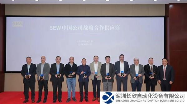 Michael Baitinger先生代表杜爾中國領(lǐng)取“SEW戰(zhàn)略合作供應(yīng)商獎”(右四)