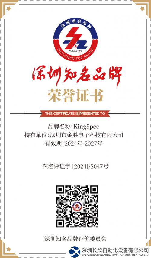在日益緊張的貿(mào)易形勢與激烈的行業(yè)競爭中,金勝電子將繼續(xù)秉承著“金品質,勝天下”的發(fā)展原則與方針,將產(chǎn)品品質與客戶的發(fā)展放在首位,為全球客戶提供更加優(yōu)質的存儲產(chǎn)品和服務。這也是支撐“KingSpec”獲評深圳知名品牌不可或缺的部分。