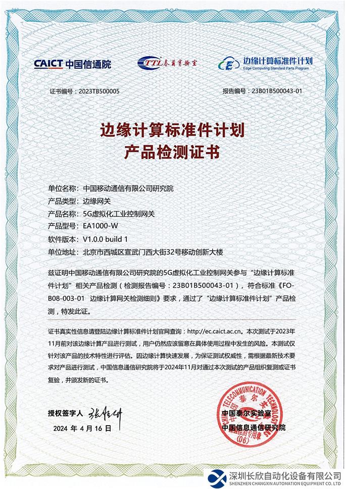 “邊緣計(jì)算標(biāo)準(zhǔn)件計(jì)劃”證書