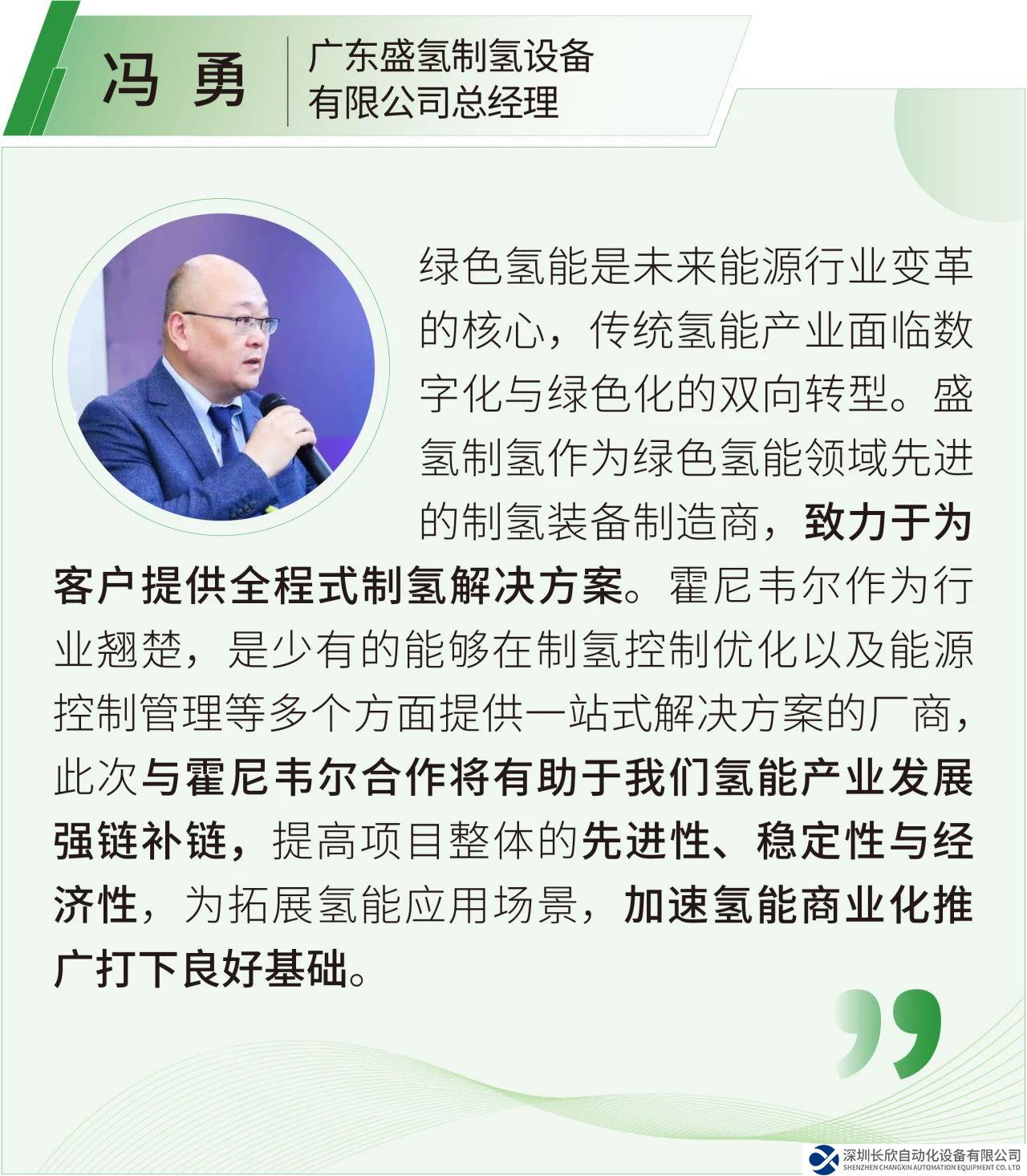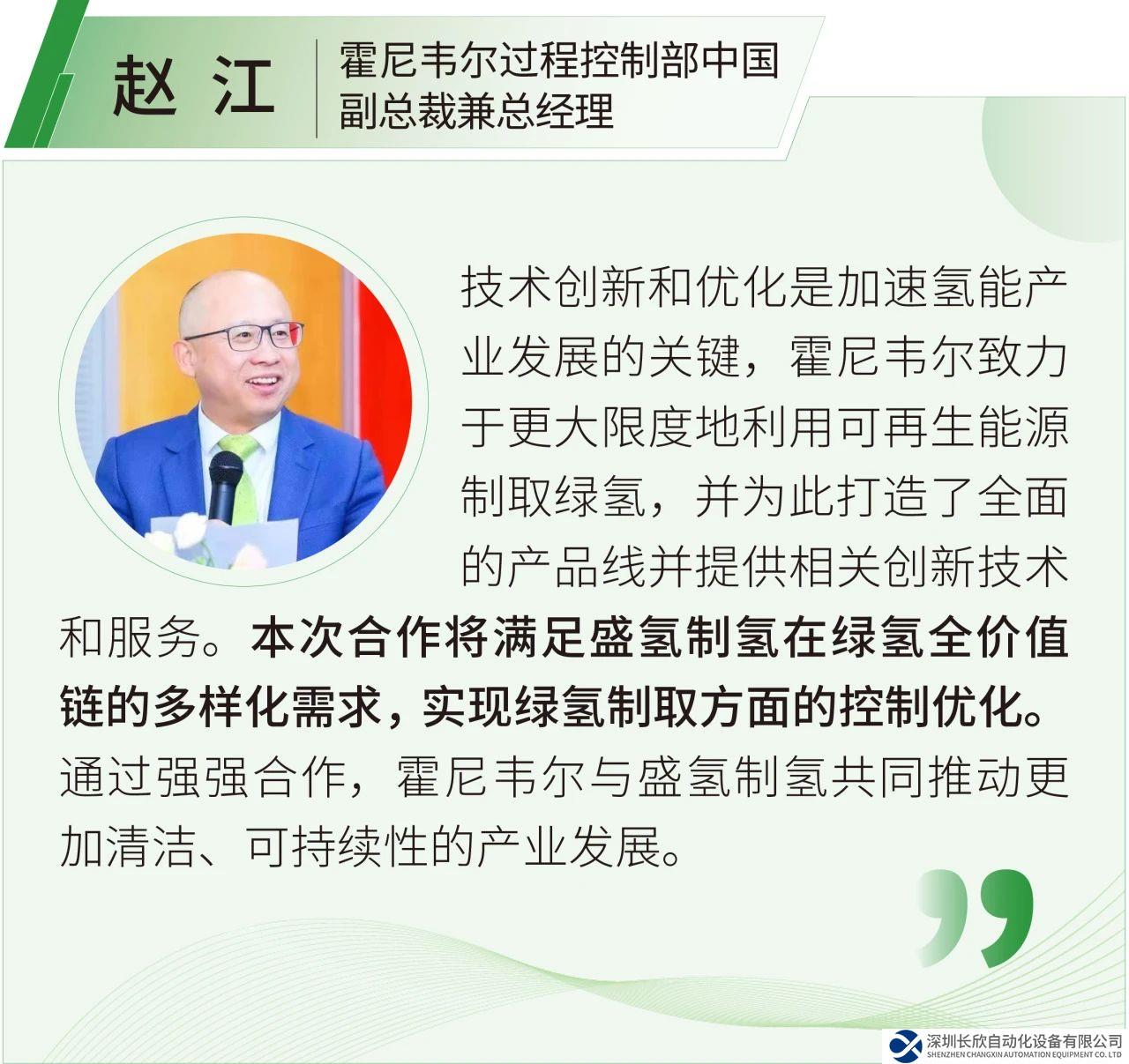 昇輝智能科技股份有限公司董事長(zhǎng)李昭強(qiáng)、廣東盛氫制氫設(shè)備有限公司總經(jīng)理馮勇、昇輝控股有限公司央企客戶(hù)部總經(jīng)理周忠毅、霍尼韋爾過(guò)程控制部全球副總裁兼中國(guó)總經(jīng)理趙江、霍尼韋爾過(guò)程控制部中國(guó)項(xiàng)目自動(dòng)化與解決方案業(yè)務(wù)總經(jīng)理王晉、中石化-霍尼韋爾合資公司總經(jīng)理林大正、霍尼韋爾過(guò)程控制部中國(guó)戰(zhàn)略與業(yè)務(wù)發(fā)展總監(jiān)李強(qiáng)、霍尼韋爾可再生能源業(yè)務(wù)中國(guó)負(fù)責(zé)人姜亞春等共同出席了本次簽約儀式。