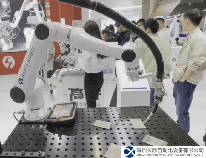 大族機器人自動化焊接工作站由Elfin Pro系列機器人本體、業(yè)界領(lǐng)先的焊接焊槍系統(tǒng)等部件組成,配合Elfin Pro系列機器人力控/視覺一體化、重復定位精度高等優(yōu)勢,實現(xiàn)靈活拖拽、接觸尋位、電弧追蹤和激光跟蹤等功能,能夠長時間、不間斷、高質(zhì)量、高穩(wěn)定性地進行焊接工作,主要為汽車零部件、工程機械、金屬加工等領(lǐng)域的自動化生產(chǎn)降本增效。