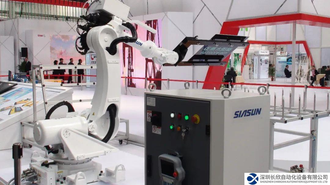 ▲ 2012年漢諾威工博會(huì),新松工業(yè)機(jī)器人光伏面板搬運(yùn)