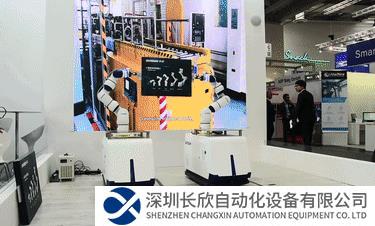 ▲ 2019年漢諾威工博會(huì),新松復(fù)合機(jī)器人行進(jìn)間雙車雙臂聯(lián)動(dòng)