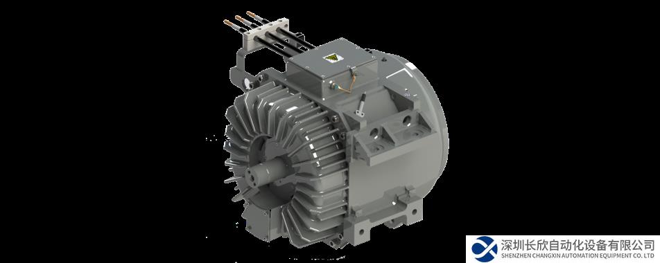 該永磁同步直驅(qū)電機極數(shù)為12。由于采用了全新的碳化硅技術(shù),電機實現(xiàn)了自然冷卻方式。電機專為地鐵車輛設(shè)計,滿足IEC 60349-4的要求,采用抱軸安裝方式,直接安裝在車軸上,用于驅(qū)動轉(zhuǎn)向架上的一個軸。