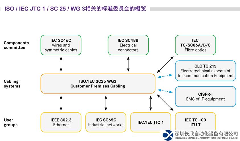 ISO/IEC JTC 1/SC 25/WG 3委員會在標(biāo)準(zhǔn)化過程中發(fā)揮著核心作用,浩亭以IEEE 802.3標(biāo)準(zhǔn)為基礎(chǔ),根據(jù)ISO/IEC 11801創(chuàng)建和更新了SPE布線標(biāo)準(zhǔn)。目前,SPE布線標(biāo)準(zhǔn)及其標(biāo)準(zhǔn)化連接器已被納入現(xiàn)有的布線標(biāo)準(zhǔn)中。在國際層面,這涉及到符合ISO/IEC 11801的結(jié)構(gòu)化布線標(biāo)準(zhǔn)系列,以及歐洲電工標(biāo)準(zhǔn)化委員會發(fā)布的符合EN 50173的歐洲標(biāo)準(zhǔn)系列。