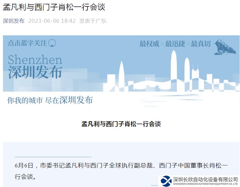 另?yè)?jù)深圳發(fā)布6月6日消息,深圳市委書(shū)記孟凡利與西門(mén)子全球執(zhí)行副總裁、西門(mén)子中國(guó)董事長(zhǎng)肖松一行會(huì)談。