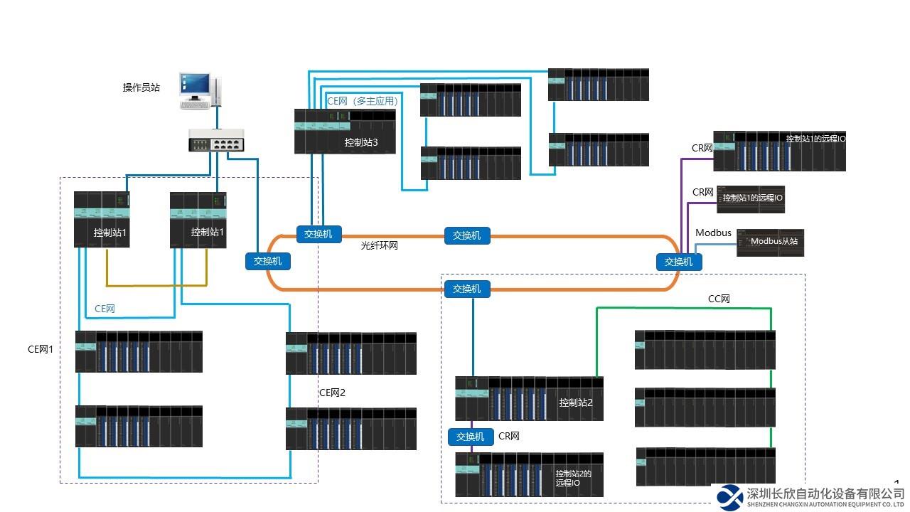 在實(shí)際應(yīng)用場景中,藍(lán)普鋒大型PLC采用雙機(jī)架冗余系統(tǒng),選用CE總線擴(kuò)展IO模塊,通過冗余CPU、環(huán)網(wǎng)等進(jìn)行各類設(shè)備的數(shù)據(jù)交互和監(jiān)視、控制,滿足更多高端應(yīng)用需求。