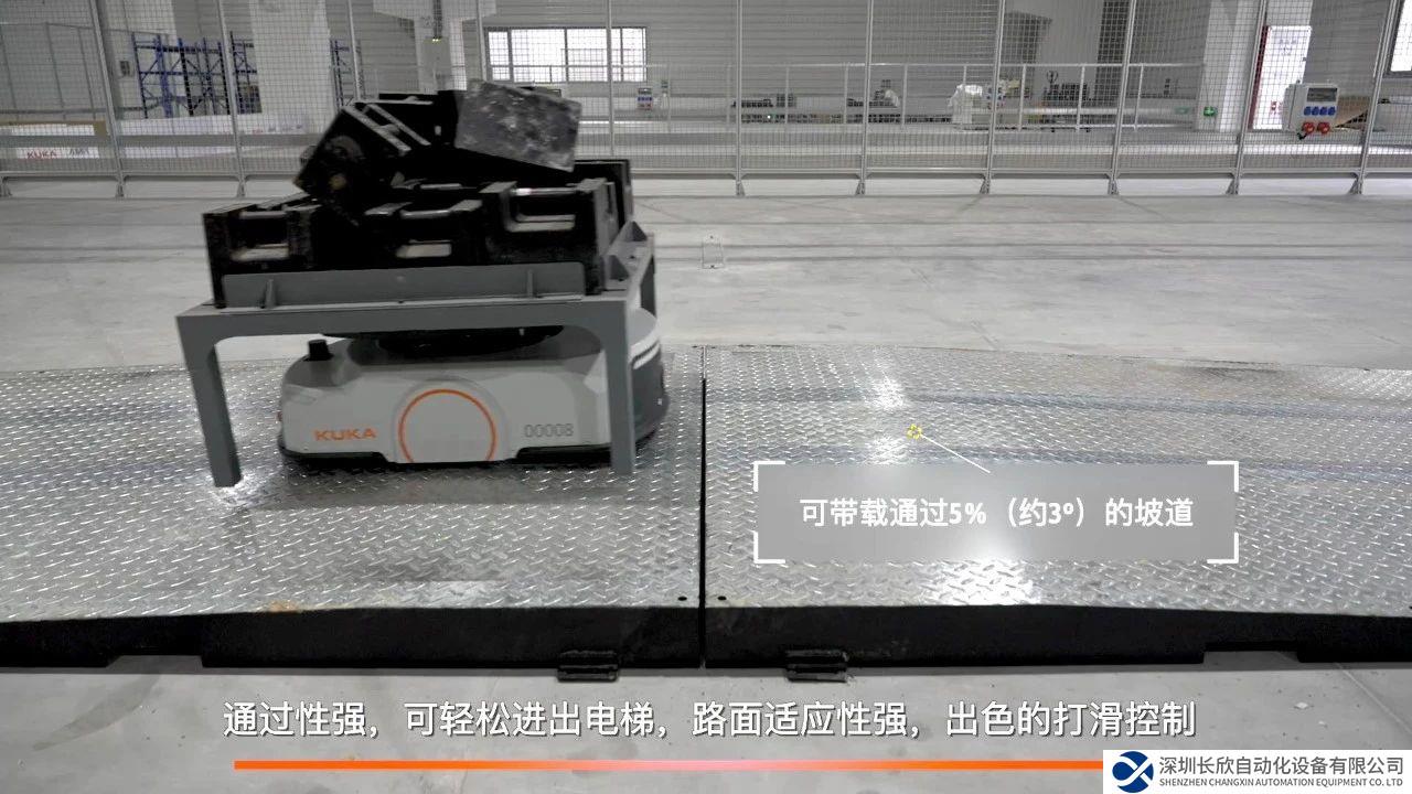 KMP 400P可輕松進(jìn)出電梯,路面適應(yīng)性強(qiáng),具備出色的打滑控制能力,可通過震蕩、濕滑路面。在通過窄道時(shí),可與周邊保持最窄安全距離為5mm。可帶載通過5%(約3°)的坡道,可通過30mm寬的溝和5mm高的坎。