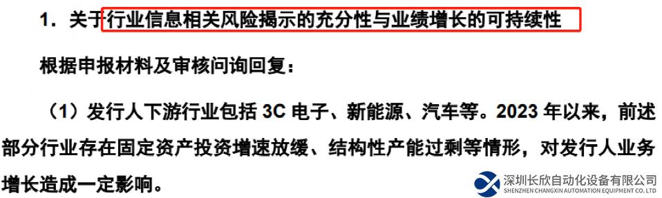 深交所要公司充分結(jié)合3C電子、新能源、汽車等行業(yè)2023年以來的產(chǎn)業(yè)發(fā)展動向、產(chǎn)能擴(kuò)張情況及市場競爭格局,期后業(yè)績變動及在手訂單情況,進(jìn)一步說明業(yè)績增長的可持續(xù)、保持競爭優(yōu)勢的主要措施及實(shí)施效果,并充分揭示業(yè)績成長性相關(guān)風(fēng)險。