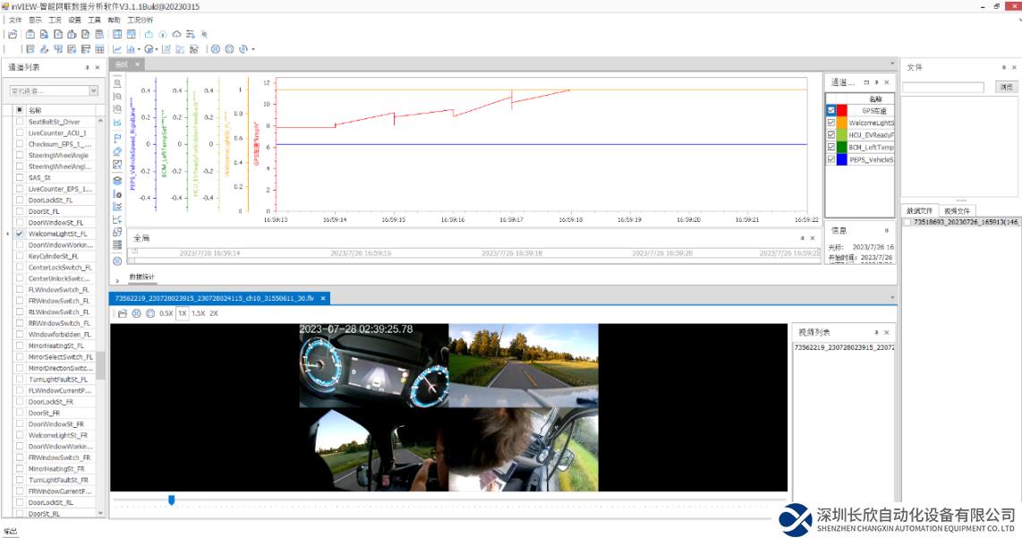采集的原始報文數據可以通過行業(yè)主流的CANOE軟件進行數據分析,也可以通過隨設備提供的inVIEW軟件進行本地分析,實現CAN總線參數、行駛軌跡、視頻、音頻、開關量等多種數據類型同步回放。軟件具有極大的靈活性,可以自定義分析流程和參數對應關系,自動生成各種報告,且用戶不受pcense限制。