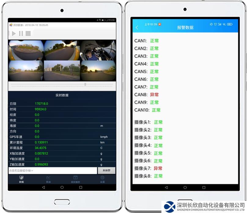 Data_View APP軟件用Android手機或者平板與智能網聯(lián)數據采集終端近場連接,實現實時數據、視頻的本地展示,實時監(jiān)控CAN總線配置/連接、視頻接入狀態(tài)并可視化預警,保障試驗數據的完整性。